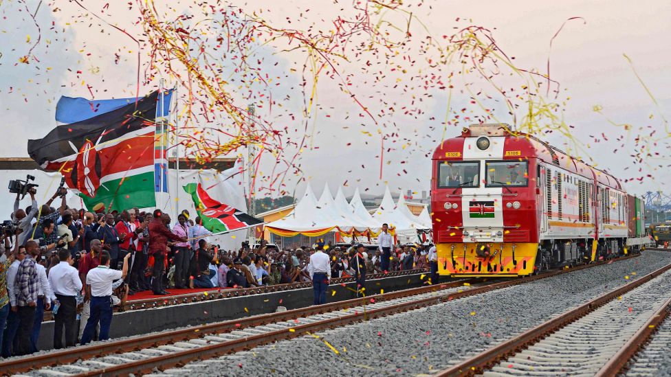 Et slikt prosjekt er den nye jernbanen mellom Kenyas hovedstad Nairobi og havnebyen Mombasa, som ble åpnet i mai 2017, 18 måneder tidligere enn først planlagt. Prosjektet utgjør første del av Kenyas største infrastrukturprosjekt siden landet ble uavhengig fra Storbritannia i 1963, og har en prislapp på 3,2 milliarder dollar. Finansieringen av den 485 kilometer lange jernbanelinjen har Kina stått for, mens reisetiden kuttes fra ni timer med buss eller tolv timer med tog tidligere, til fire og en halv time med tog. Kineserne skal også drifte den nye jernbanelinjen i en periode, mens kenyanerne får opplæring.