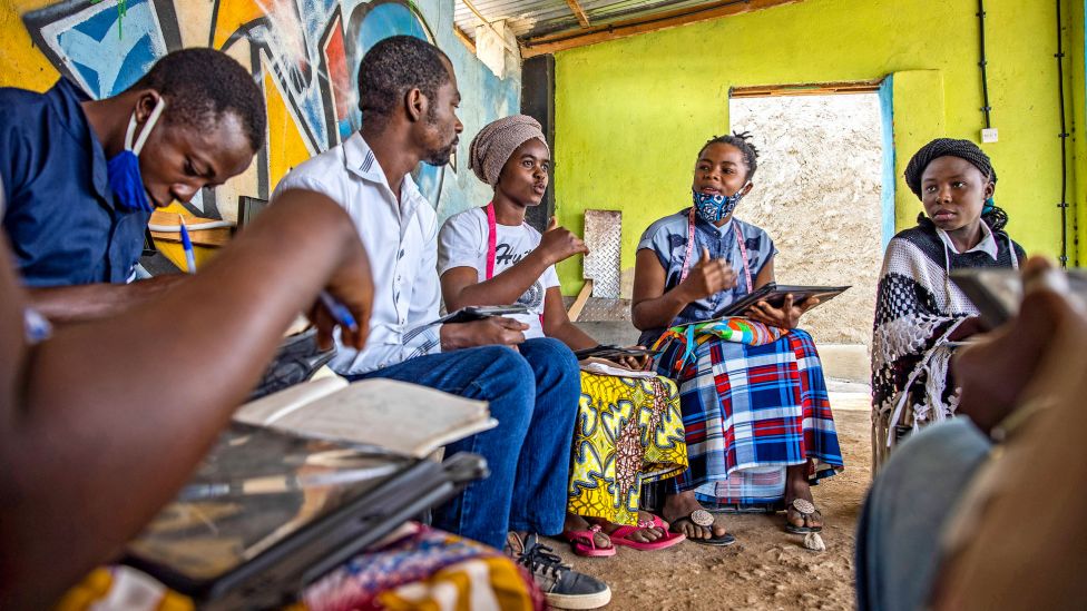 Vi er i flyktningbosetningen Nakivale i sørvestre Uganda. Her har organisasjonen Hello World i samarbeid med det nasjonale teleselskapet Roke Telkom bygget åtte digitale wi-fi-sentre, såkalte «Hello Hubs», der barn og voksne kan studere, kommunisere og gjøre research.