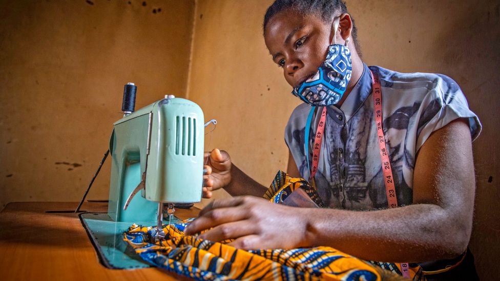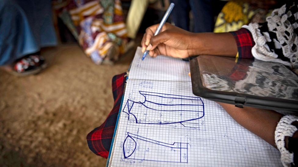 Feza Madu er en av et tyvetall unge kvinner her som tar kurs i skreddersøm.
