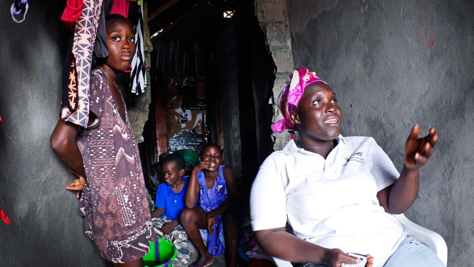 Nå sitter hun her for å rekruttere naboene til en studie om virusets sosiale og økonomiske følger, nesten akkurat der man tror epidemien kom inn i befolkningen et år tidligere.