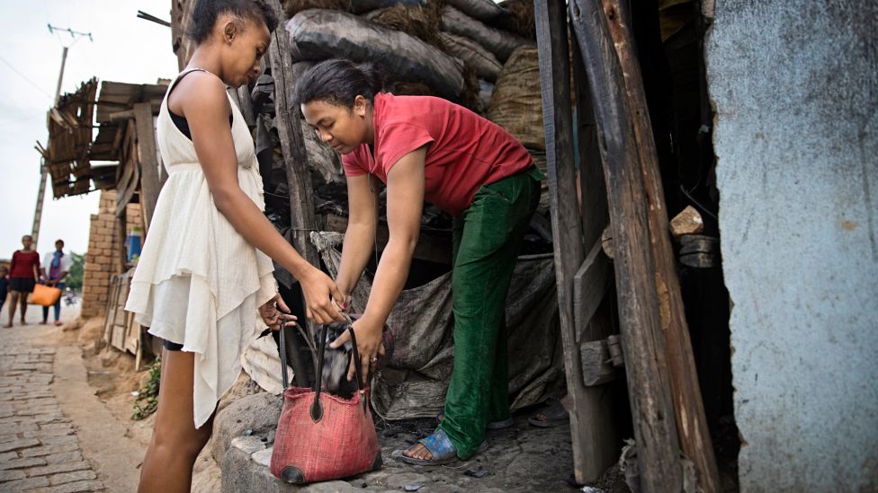 Hjemme hos kullselger Ravaka Rasafiarosas er det på tide å lage søndagsmiddag. Hermine tenner opp ilden ute på gaten før hun bærer det ulmende kullet inn til det lille rommet der maten skal lages.