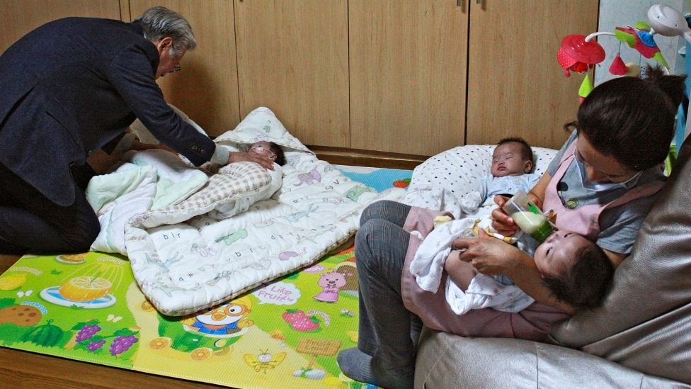 Barnefødsler i Sør-Korea./ Befolkning: 51 069 000. / I 2018 var fødselsraten i Sør-Korea rekordlav, på 0,98, og landet sliter dermed med stort fødselsunderskudd. / I den siste folketellingen fra 2017 var det 952 059 husstander som besto av enslige mødre. Tallet har steget siden 2010, da antallet var 733 185. / Abort er ulovlig (unntatt ved voldtekt, fare for kvinnens liv og lignende) i Sør-Korea, men det praktiseres bredt på klinikker i hele landet. Offisielt ble det utført 340 000 aborter i 2010, men det estimeres at det var 1–1,5 millioner uregistrerte aborter i tillegg. For å sette det i perspektiv: I 2011 ble det født 470 000 levende barn.
