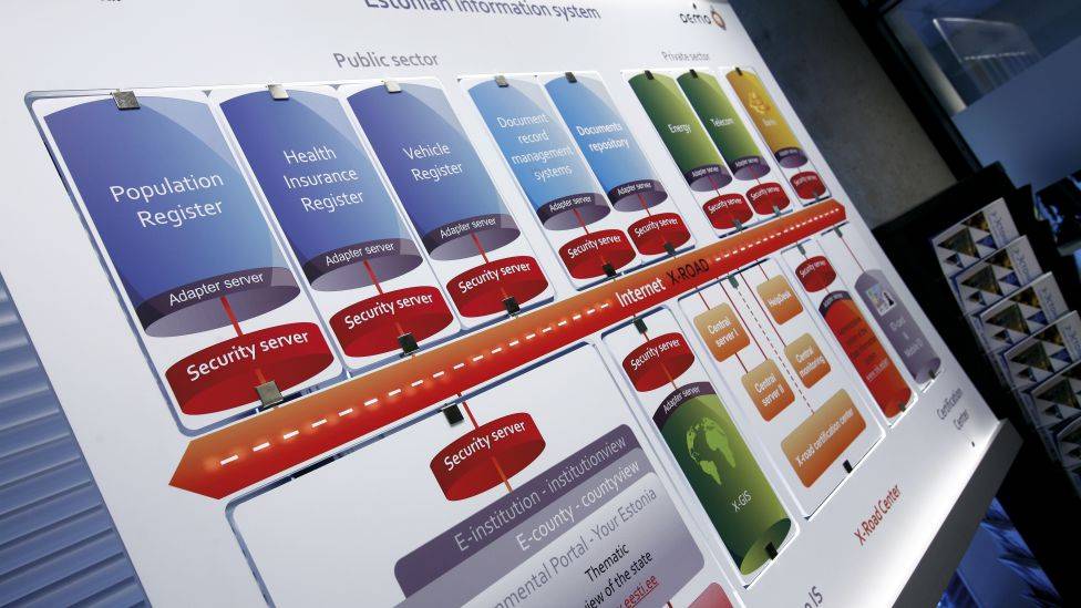 Fri fart på digital motorvei. Utgangspunktet for Estlands løsninger er forvaltningens elektroniske felles motorvei, «X-veien», som knytter ulike offentlige registre fra bilregistre til eiendoms- og folkeregistre sammen. Borgerne kobler seg på «X-veien» og kommuniserer med myndighetene gjennom et elektronisk ID-kort som er utstedt til alle innbyggere. Kortene åpner alt fra førerkortregister, bilregister til vitnemål, pensjonsfond og forsikringer. En av de nyeste løsningene er en oversikt over bilers service- og skadehistorie. Byggesøknader, flyttemeldinger og annen kommunikasjon med myndighetene foregår via ID-kortet, og over 40 land har til nå kjøpt e-forvaltningsløsninger fra Estland, blant dem Finland.