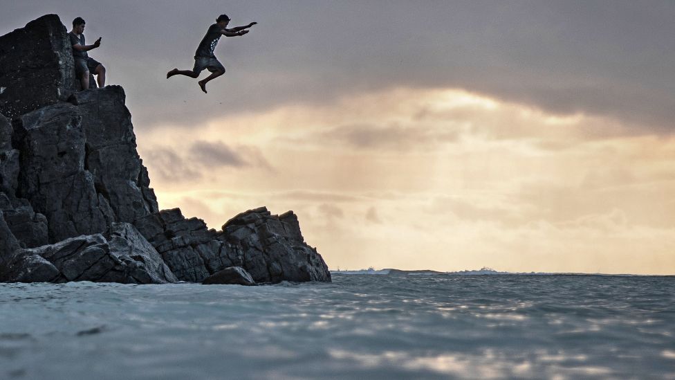 Mulighetene i havet Foran det spesialbygde skipet Anuanua Moana (bak i oransje), som brukes i utforskingen av havbunnen, kjøler de lokale ungdommene seg ned i havet. Cookøyenes innbyggere har newzealandsk statsborgerskap, og mange har flyttet til New Zealand for å jobbe. Cookøyenes regjering håper at mineralutvinning kan skape muligheter som gjør at flere velger å bli boende på øyene på heltid. Alle foto: Per Liljas