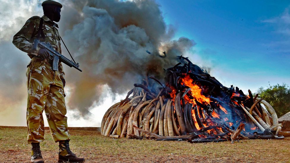 Det hittil desidert største bål med elfenben ble påtent av Kenyas president Kenyatta i Nairobi i april 2016 – 106 tonn gikk opp i røyk. Hensikten var også her å vise verden at elfenben er uten verdi når det ikke er på elefantene. Et salg av elfenben ville bare stimulere etterspørselen ytterligere.