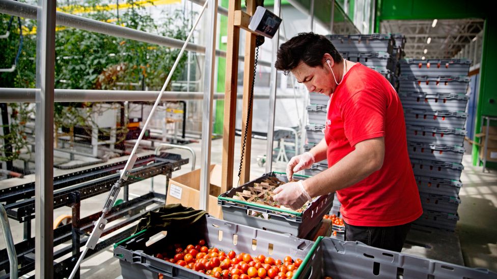 • Tonnevis Når anlegget er i full bruk og økt til 11 000 kvadratmeter drivhus, kommer det til å produsere 600 tonn tomater i året. Reza Ahangaran pakker tomater fra drivhuset som snart skal kjøres ut til butikker rundt om i landet. «Den som har smakt våre tomater, vil gjerne ha dem igjen», hevder eieren Hugo Wikström. Tomatene selges i dagligvarehandelen for opp mot 200 kroner kiloen. Foto: MALIN PALM