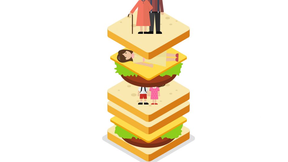 Den såkalte sandwichgenerasjonen beskriver dem «klemt inne mellom to skiver brød og som blir spist opp fra alle kanter».