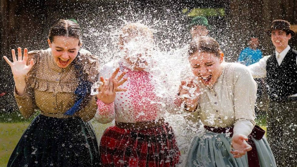 I deler av Sentral- og Øst-Europa finnes enda en påskemetode for å styrke kvinnelig fertilitet. Den innebærer vann, som også symboliserer renhet og renselse. Det som på polsk kalles Śmigus-dyngus (også kalt Lany Poniedziałek, «Våt mandag») er en tradisjon andre påskedag både i Polen, Ungarn, Ukraina, Tsjekkia og Slovakia. Om du er tsjekkisk kvinne, må du med andre ord forberede deg på både vannbøtter og grenpisker andre påskedag.