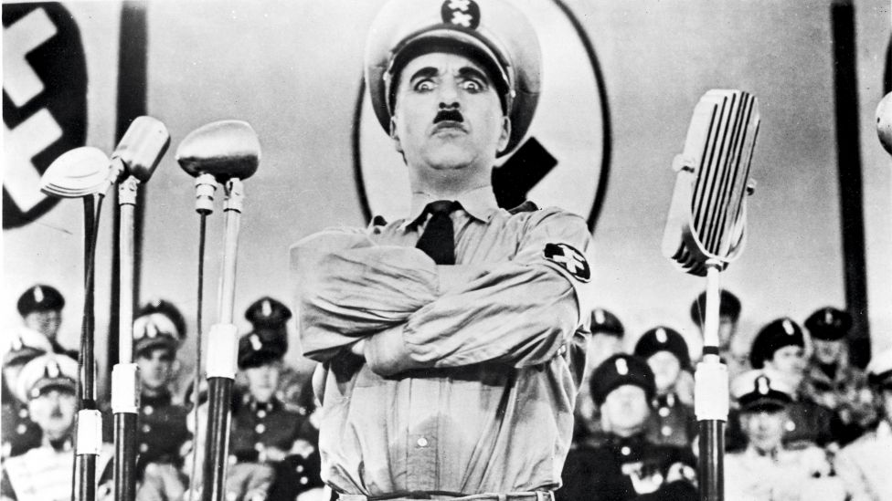 I de harde trettiårene kjemper han fabrikkarbeiderens sak i filmen «Modern Times» (1936). Og ved utbruddet av annen verdenskrig går han til kraftig satirisk angrep på Hitler, Mussolini og antisemittismen i filmen «Diktatoren» (1940). Sluttscenen i filmen består av en lang tale hvor han ser rett inn i kameraet og oppfordrer menneskeheten til å slutte fred. Filmen er antiautoritær til margen. Den ble i 2012 kåret til en av de beste politiske filmene noensinne av Time Magazine.