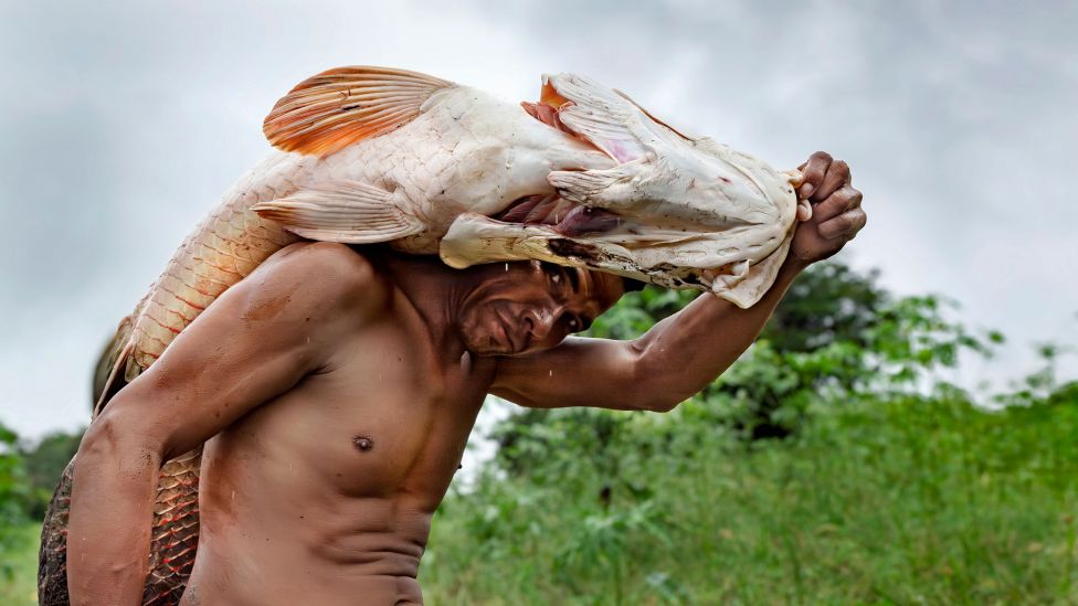 Fiskerne forteller at tørken har ført til massedød av fisk generelt og delfiner og isolert mange urfolksfamilier. Arapaimaene, de eldgamle kjempene i Amazonas, trenger imidlertid ikke å frykte tørken: De har trukket seg tilbake til dypere områder av elven. En evolusjonær tilpasning utviklet gjennom millioner av år gjør at de kan leve i grunt, oksygenfattig vann og puste luft over vannflaten.