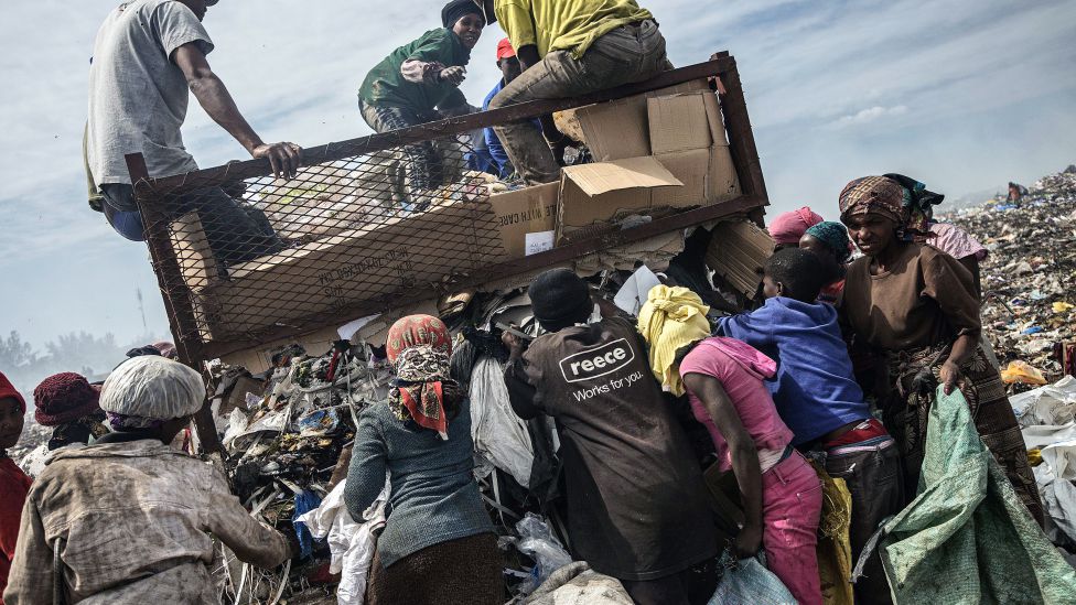 • Halve befolkningen lever i fattigdom På søppelfyllingen i Mosambiks hovedstad Maputo, leter folk etter brukbare gjenstander som kan selges, 14. oktober 2014. Over halvparten av landets innbyggere lever under fattigdomsgrensen. Økonomisk vekst og gassfunn har imidlertid gjort utsiktene noe lysere, men de trues av politisk uro. Foto: ERIKA FATLAND