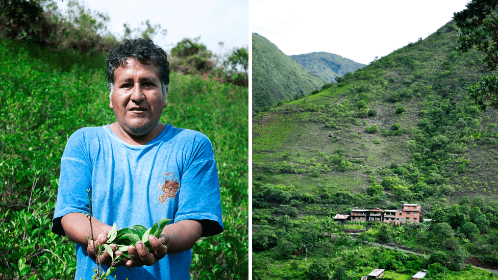 Bak familiens lille hus har han i hele sitt liv dyrket kokablader. Han forteller at avlingen er økologisk, og at han som ett av Adepcocas 30 000 medlemmer selv tar turen over fjellet for å levere sine avlinger. Det er i dag omkring 6000 foreninger av kokabønder, og det å være kokabonde er en livsstil. Midt ute blant plantene er han i sitt rette element. Entusiastisk demonstrerer han hvordan man høster.