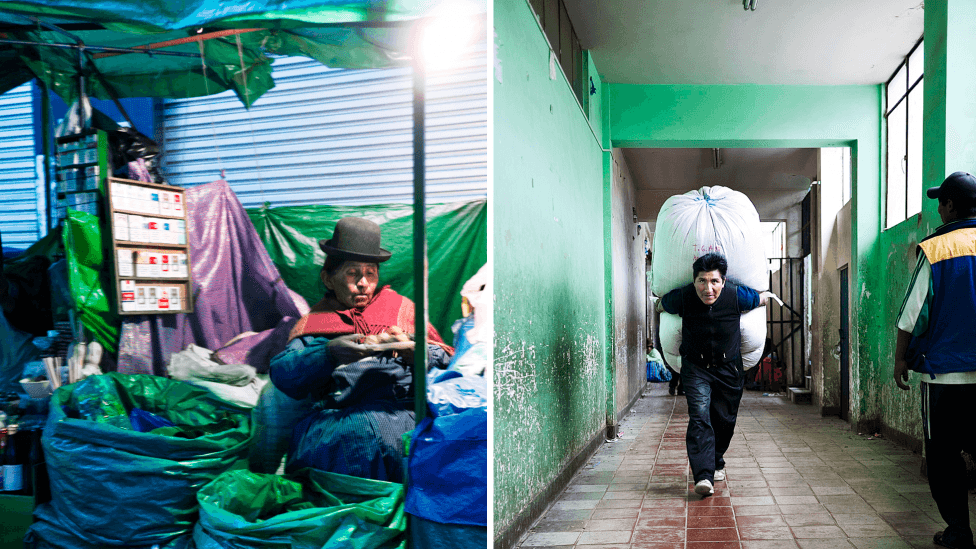 «Unna vei!» skriker en stemme, og folk skvetter til side. Krumbøyde og med rødsprengte øyne iler flere hundre kvinner og menn frem og tilbake med to 25 kilos sekker på ryggen. Her lempes, bæres, pakkes, kjøpes og selges det over ett tonn koka hver eneste dag hele året. Her er ingen velutdannede og dresskledde forretningsfolk. Her hersker cocaleroene, mennesker som er involvert i kokabladproduksjon på ulike måter. Tannløse med bulende kinn og grønn masse i munnviken; kokatyggere.