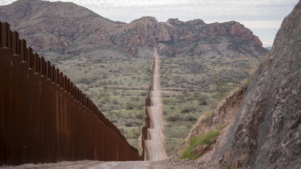 Fortsatt muligheter Grensemuren som ble bygget under Donald Trumps år som president, har mange mindre åpninger der terrenget viste seg å være for krevende å bygge på. Migrantene overgir seg til grensepolitiet som med jevne mellomrom kommer til en av de midlertidige leirene som er satt opp langs muren.