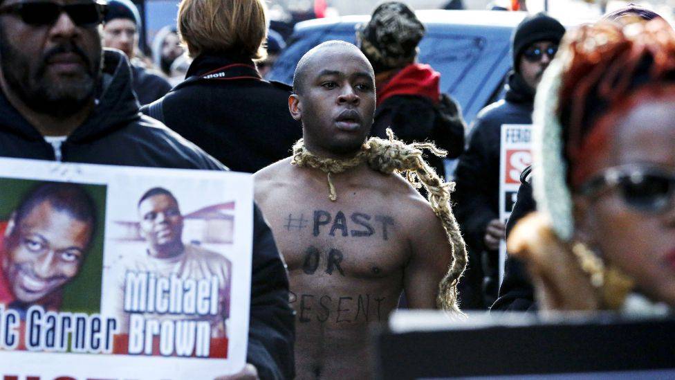 • Slaveri i fortid eller nåtid? Tusenvis av mennesker demonstrerte i Washington 13. desember mot politiets drap på ubevæpnede svarte. Mange vil si at problemet i USA handler om klasse, ikke om rase. Men det er ikke slik det oppfattes av mange med minoritetsbakgrunn. For afroamerikanere handler dette om arven fra slavetiden. Foto: EDUARDO MUNOZ, REUTERS/NTB SCANPIX