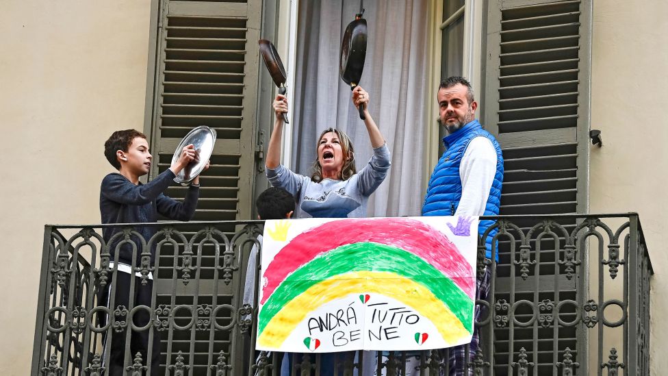 Barn i Italia skriver «andrà tutto bene» («alt kommer til å gå bra) på gater og vegger, og utallige naboer stiller opp og hjelper hverandre. I mars fortalte en italiensk journalist til The Guardian om følgende opplevelse: «Etter et øyeblikks panikk i befolkningen, er det dukket opp en følelse av solidaritet. Butikkene leverer varer hjem til folk, og en gruppe fri-villige drar på hjemmebesøk til dem over 65.»