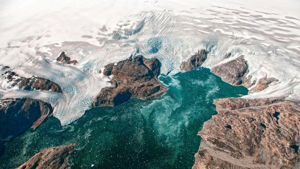 • Isen smelter Dette fotografiet av isbreene Buckner og Heim som renner ut i Johan Petersen-fjorden sørøst på Grønland, er tatt for NASA 22. september 2016. Foto: Jeremy HARBECK, NASA GODDARD/AFP/NTB SCANPIX