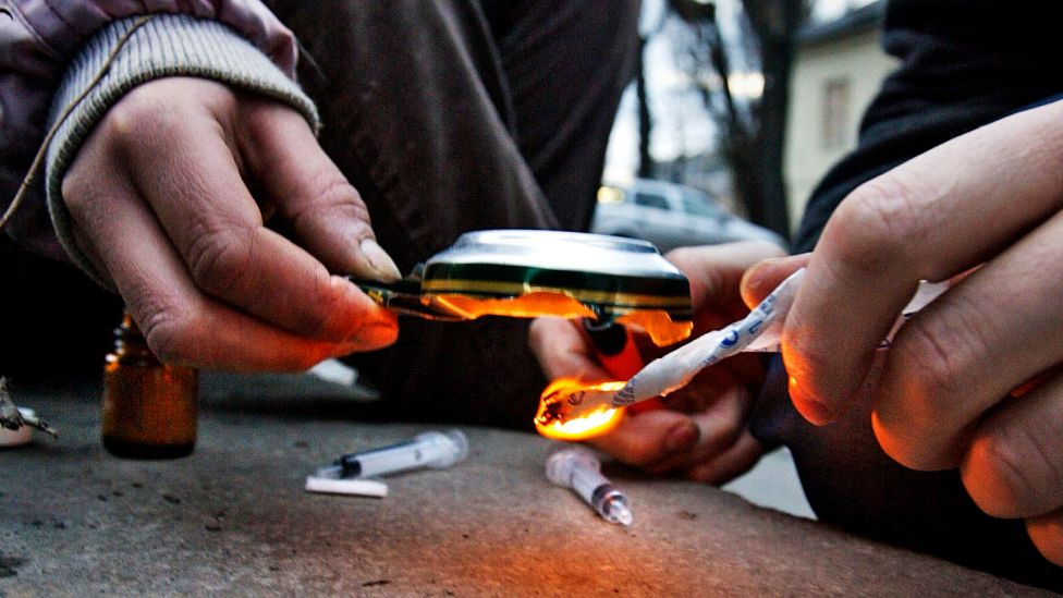 • Tøft og utsatt liv Heroinet varmes opp til det er flytende og injiseres med sprøyte. Narkotika som injiseres, gjør brukerne ekstra sårbare for hiv og hepatitt C. FN estimerer at 13 prosent av de som injiserer narkotiske stoffer, har hiv. Foto: STEIN J. BJØRGE, AFTENPOSTEN