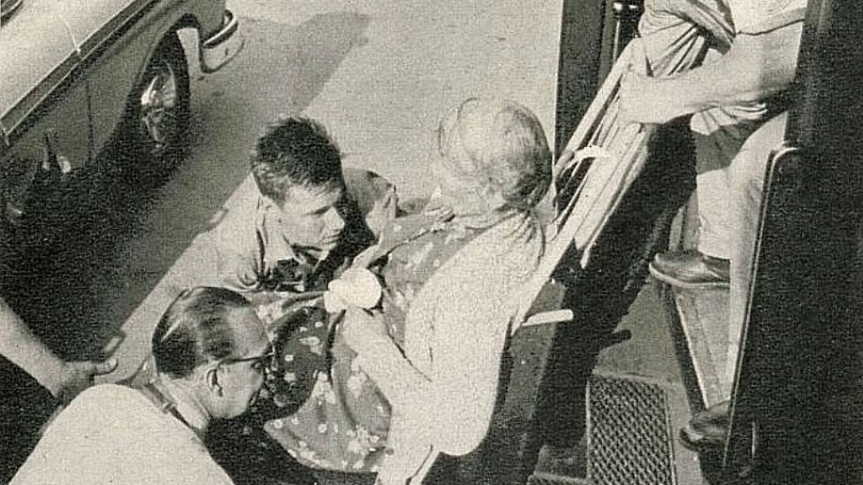 En juni-formiddag i 1961 svinger et titall biler inn på plassen foran Vestbanehallen i Oslo. Passasjerenes bagasje blir tatt hånd om, og de blir geleidet mot perrongen hvor et tog venter på dem. Der møtes de av blitzregn, journalister og radioreportere. Et helt musikkorps står oppstilt, klare til å spille.